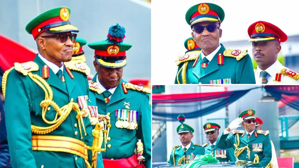President Muhammadu Buhari has arrived at the Nigerian Army Trooping and Presentation of Colours parade 2023 at Eagle Square in Abuja.