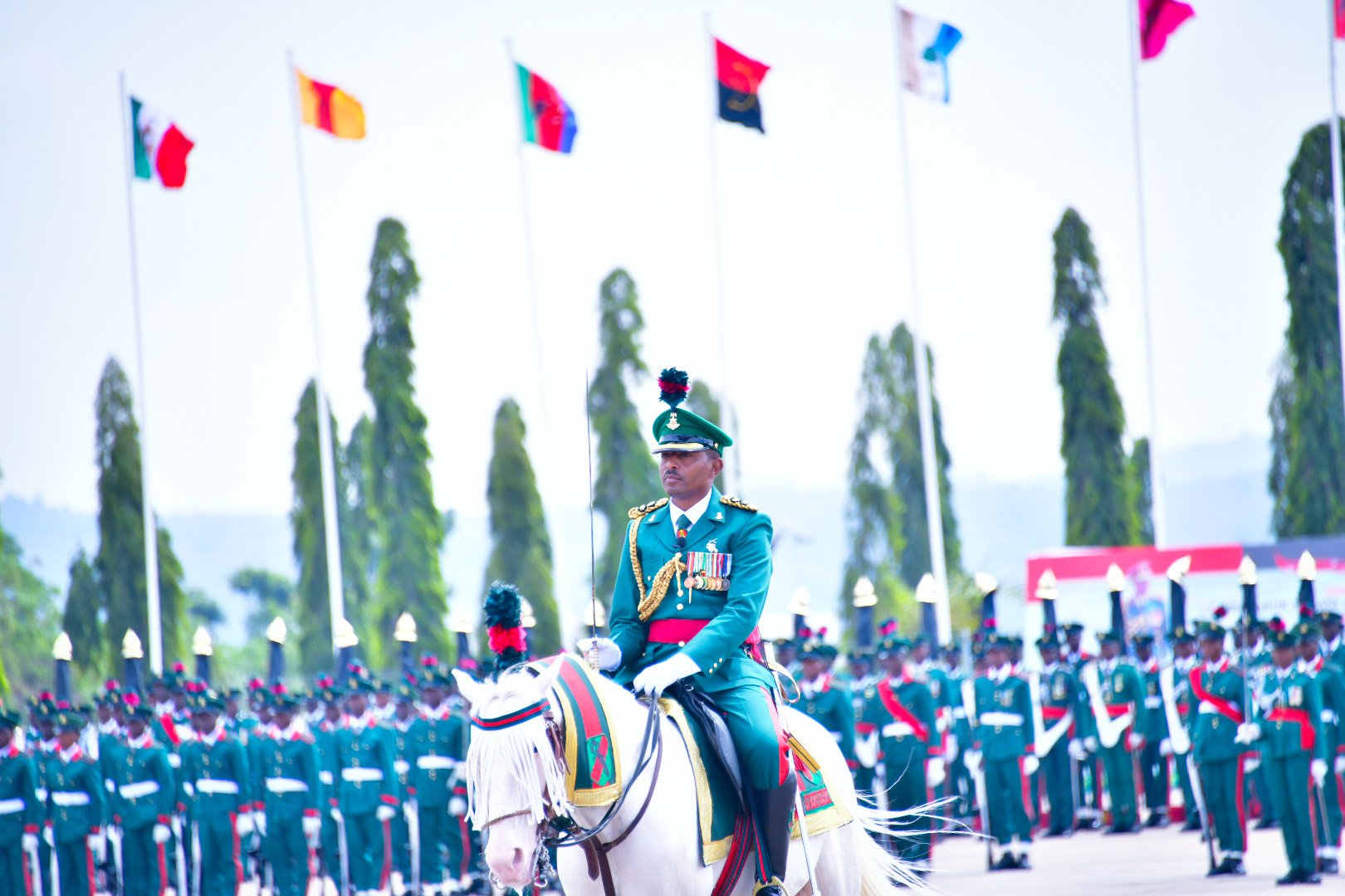 Dressed in the ceremonial military uniform, the retired army general is currently reviewing an impressive standby of over 1,000 officers who have gathered for the parade.